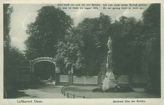 Es war ursprünglich im Jahre 1878 an der Ecke Kirchstraße/Hagsche Straße errichtet worden und verdankt seine Entstehung der großen Popularität der Sage von „Otto der Schütz“ in der Fassung von Gottfried Kinkel. Sein 1841 verfasstes Versepos „Otto der Schütz, eine rheinische Sage in 12 Abenteuern“ erreichte bis 1911 insgesamt 87 Auflagen.