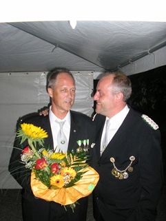 Zu den ersten Gratulanten auf der Festwiese gehörte auch das amtierende Majestätenpaar aus Rindern: Stefan und Gabi Hendricks.