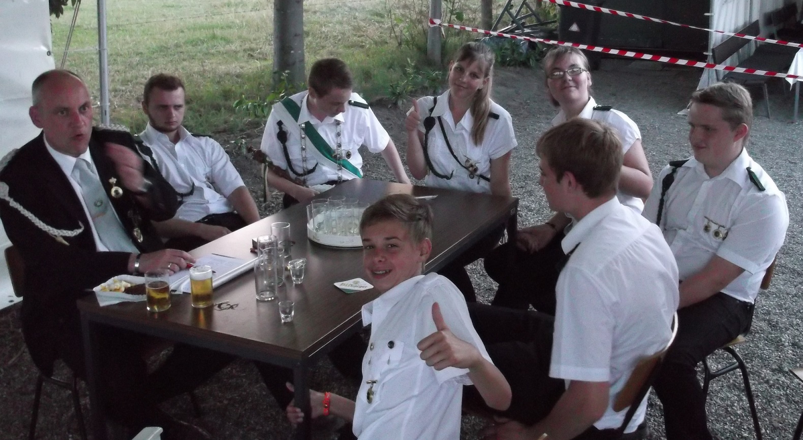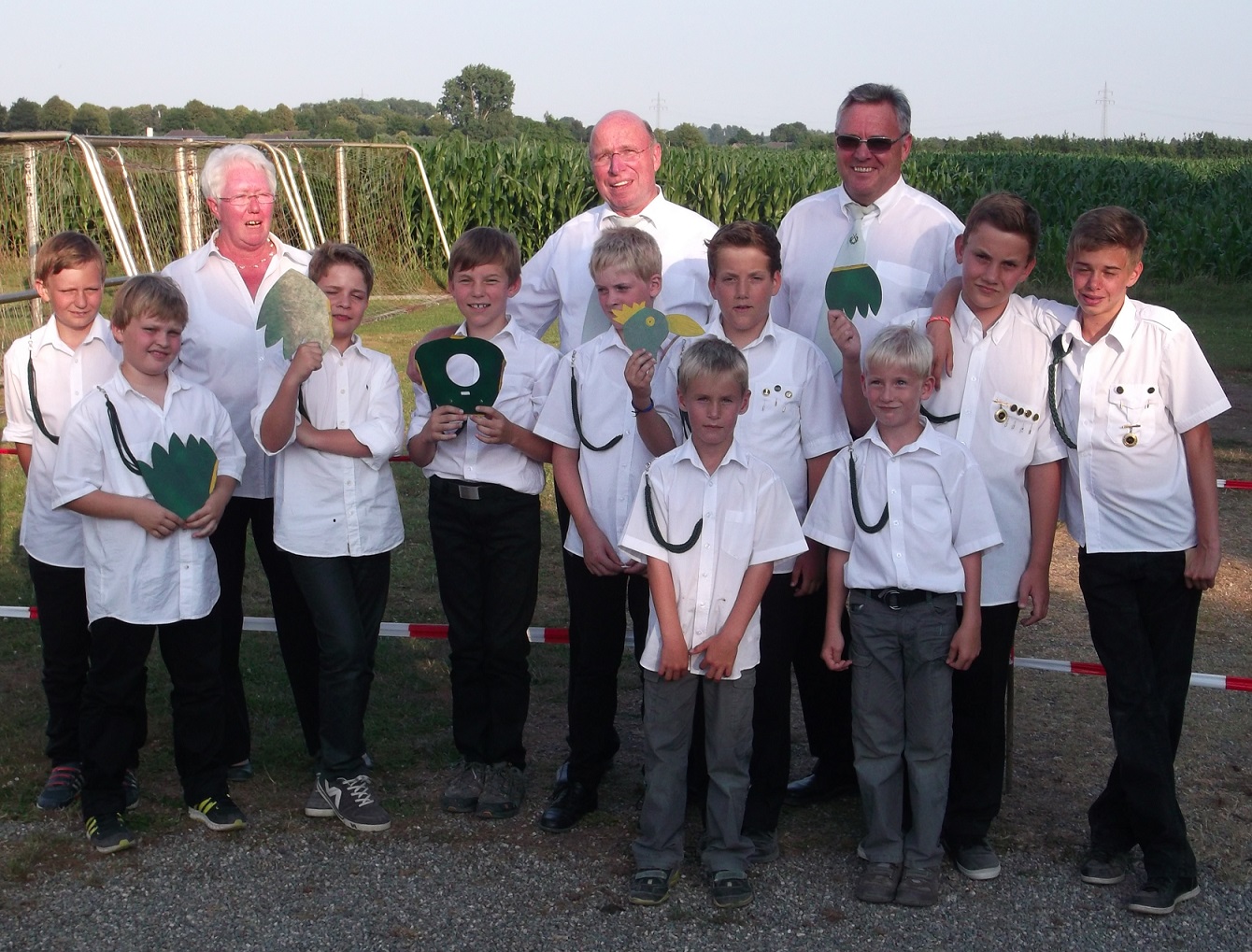 Auch bei der Jugend wurde der Vogel gerupft. Sieben Jugendliche waren zum Schießen angetreten. Die Preise wie folgt: Kopf – Lukas Kohlleppel mit dem 52. Schuss, rechter Flügel – Sandra Maaßen mit dem 94. Schuss, linker Flügel – Florian van Brakel mit dem 137. Schuss, Schwanz – Niklas Bos mit dem 247. Schuss. Matthias Maaßen gelang es schließlich mit dem 348. Schuss den Rest des Vogels von der Stange zu schießen. Matthias Maaßen wird am Kirmesmontag als neuer Jugendprinz proklamiert. Matthias hat Daria Schweers zur Prinzessin auserwählt.